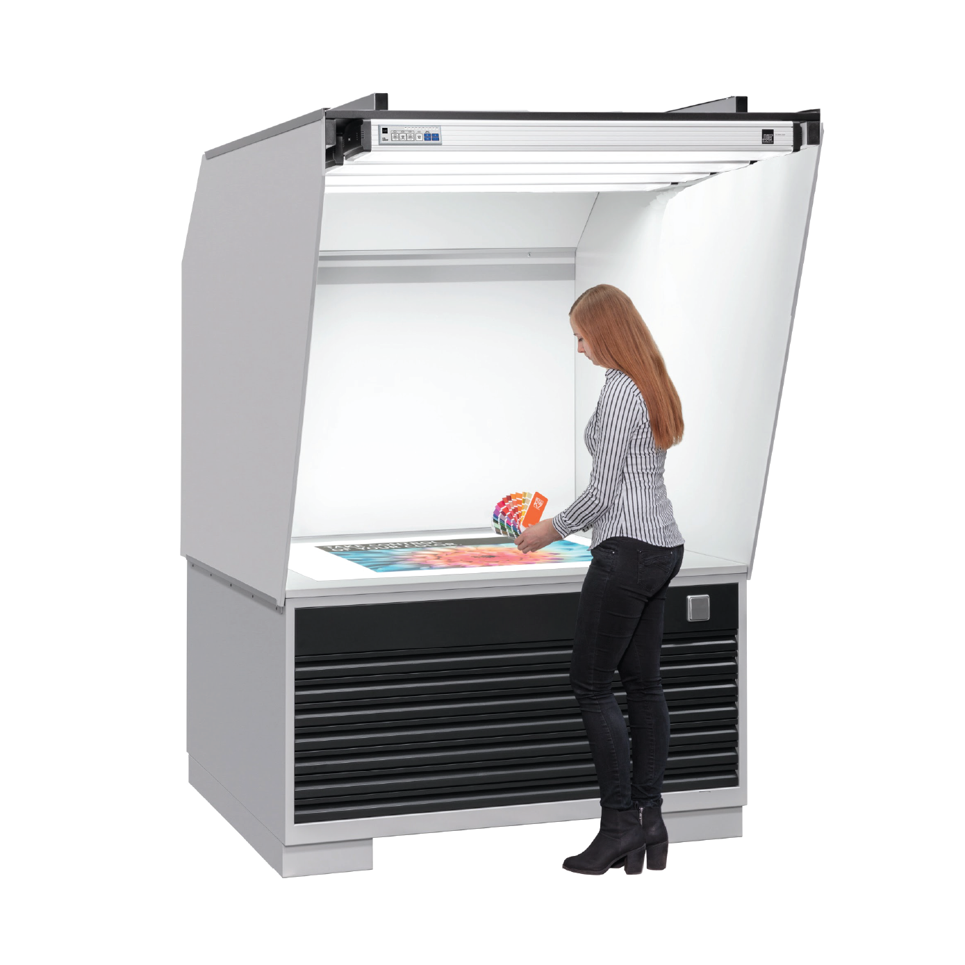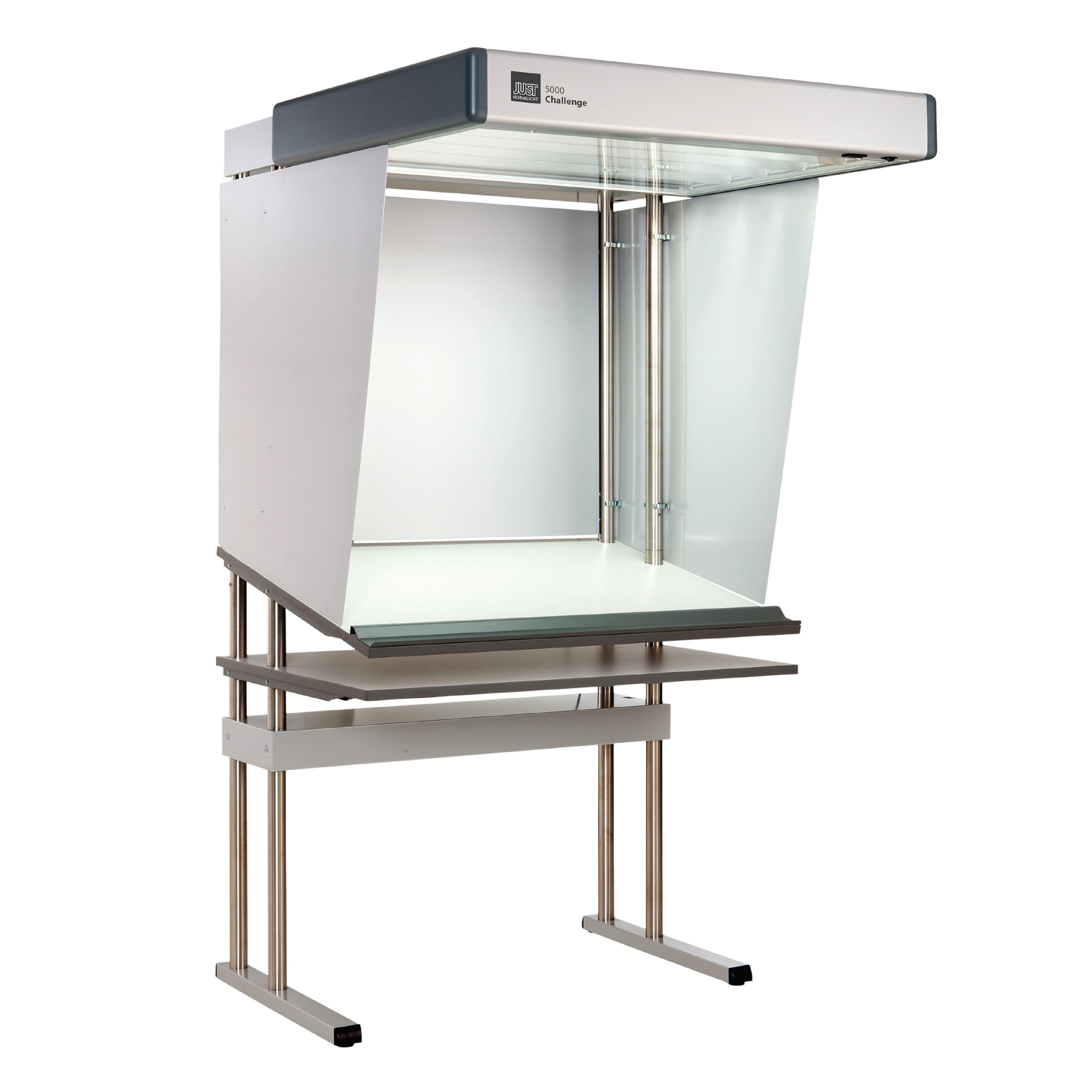 La Just Normlicht Challenge 5000 es una estación de prueba de color profesional diseñada para ofrecer iluminación estandarizada D50 (5000 K) y visualización precisa de pruebas de impresión. Permite evaluar y comparar colores bajo condiciones controladas, cumpliendo con normas internacionales de calidad visual, lo que la convierte en una herramienta esencial para imprentas, agencias de diseño y procesos de control de calidad en impresión.