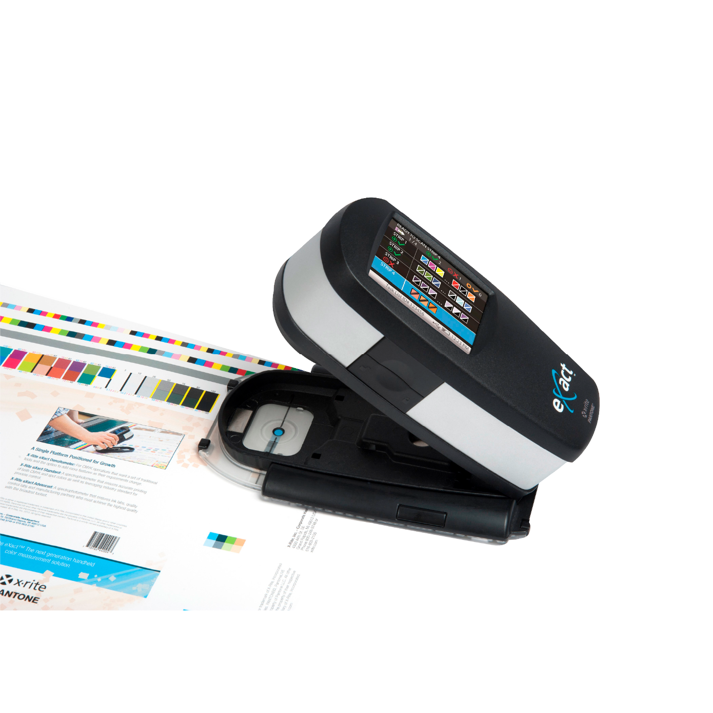 | eXact Basic Plus | Densidad CMYK mejorado | Operaciones de impresión con control de calidad ligero | Igual que Basic, pero con conectividad Bluetooth y mejores capacidades densitométricas. |