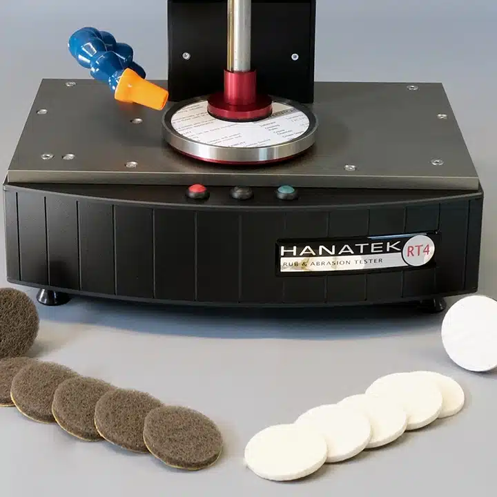 La medición se realiza con parámetros controlables como presión, número de ciclos, velocidad y tipo de frote, lo que hace al RT4 ideal para comparar materiales, validar formulaciones y definir especificaciones de producto.