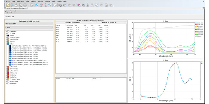 - Incluye una serie de funciones y herramientas inteligentes que permiten a los formuladores comprender mejor la obtención del color, tomar decisiones más informadas sobre la formulación, optimizar datos tradicionales, cambiar rápidamente entre trabajos y trabajar con más confianza.